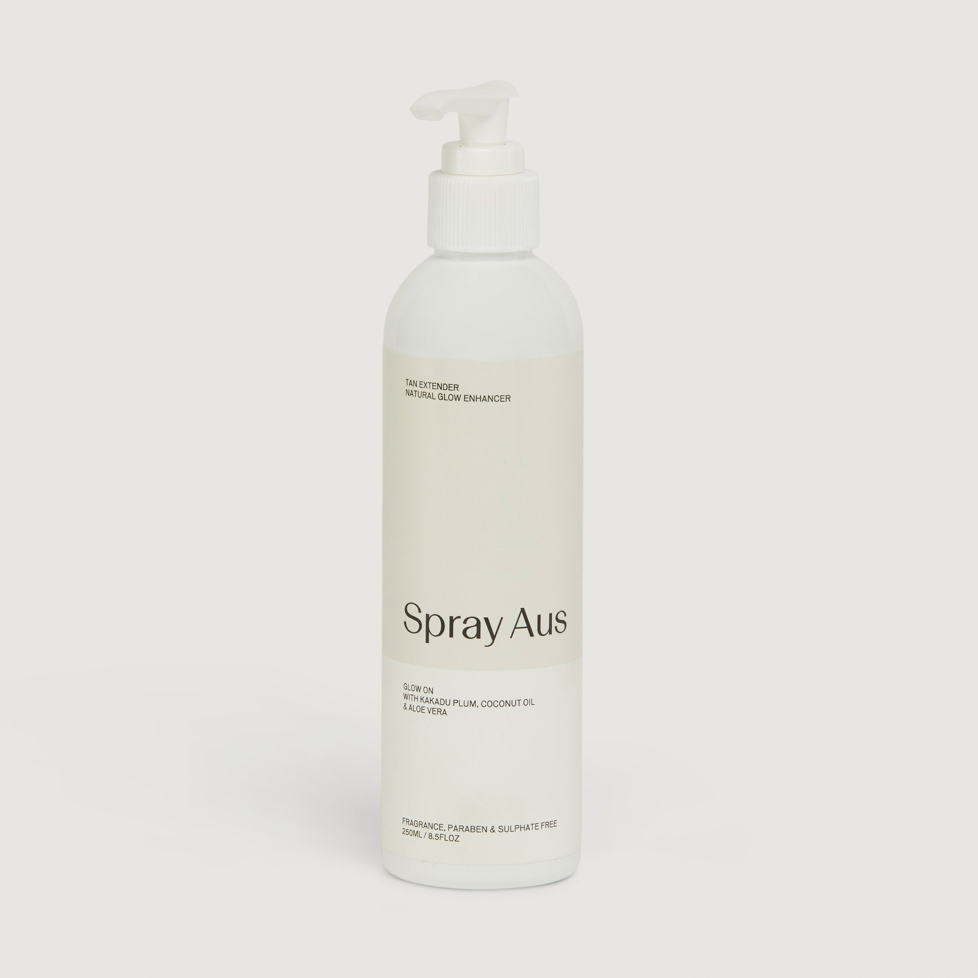 Aloe barbadensis (Certified Organic Aloe vera) leaf juice, Aqua, Ethyl oleate, Glycerin (Naturally derived), Cetearyl alcohol (Naturally derived), Caprylic/Capric triglyceride (Naturally derived), Dihydroxyacetone (Certified Natural), Glyceryl stearate (Naturally derived), Ceteareth-20 (naturally derived), Cocos nucifera (Certified Organic Coconut) oil, Terminalia ferdinandiana (Australian Native Kakadu plum) fruit extract, Juglans nigra (Certified Organic Walnut) leaf extract, Erythrulose (Certified Natural), Sodium PCA (Naturally derived), Tocopherol (Natural Vitamin E), D-Panthenol (Vitamin B5), Caffeine, Xanthan gum, Caprylyl glycol, Phenethyl alcohol, Alcohol, Sodium hydroxide.