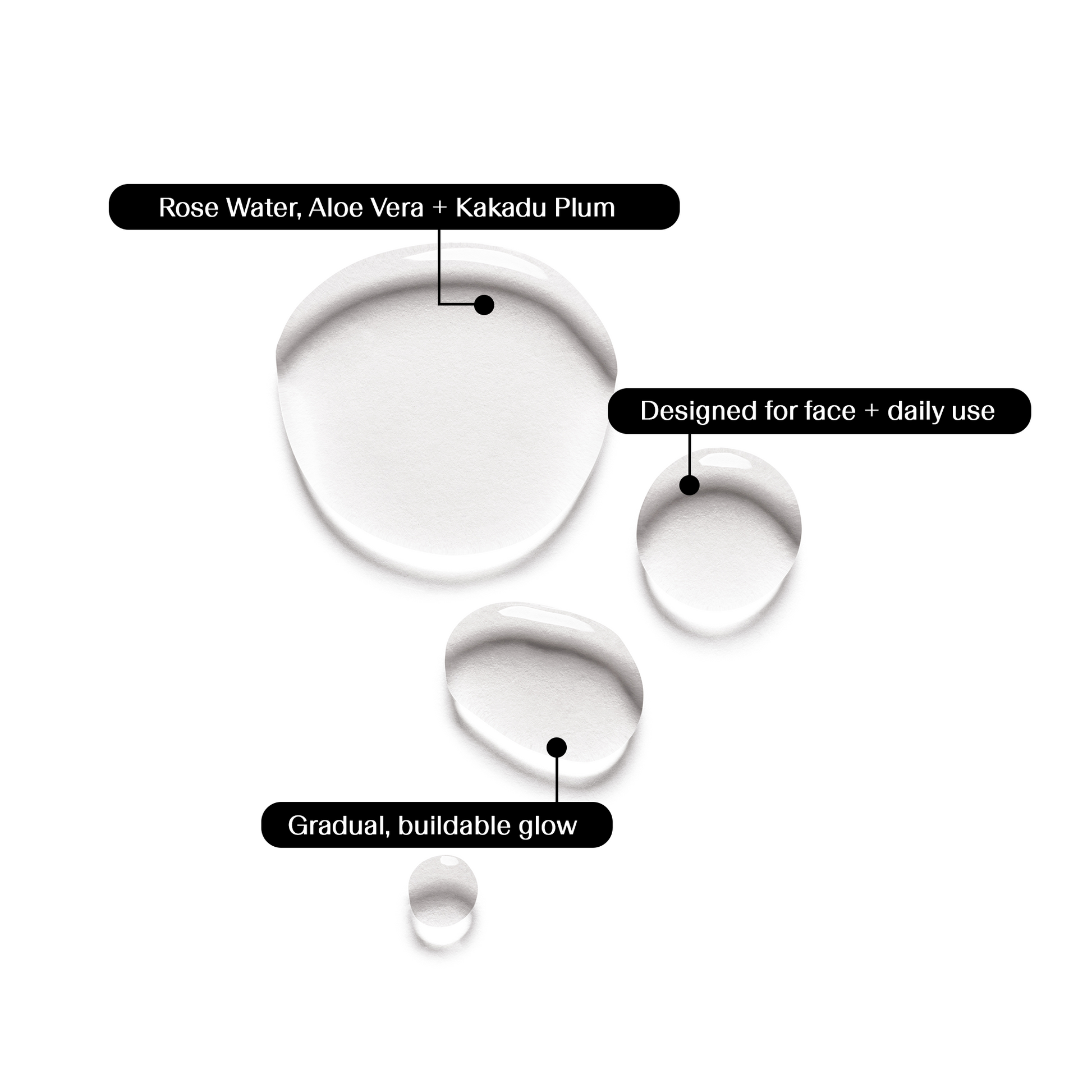 Aqua, Dihydroxyacetone (Certified Natural), Cocos nucifera (Coconut) water, Aloe barbadensis (Certified Organic Aloe vera) leaf juice, Hamamelis virginiana (Witch hazel) flower water, Glycerin (Naturally derived), Erythrulose (Certified Natural), Terminalia ferdinandiana (Kakadu plum) fruit extract, Cucumis sativus (Cucumber) fruit extract, Rosa centifolia (Rose absolute) flower oil, Sodium PCA, Saccharomyces ferment, Panthenol (Vitamin B5), Tocopherol (Natural Vitamin E), Dimethyl isosorbide, Phenoxyethanol, Alcohol, Maltodextrin (Organic).